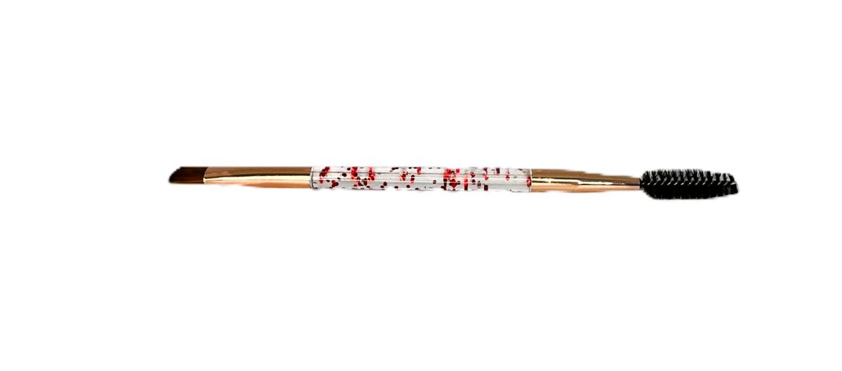 Brocha 2 en 1 con cepillo spoolie para peinar pestañas o cejas y pincel angular para aplicar sombra o delineador con precisión.