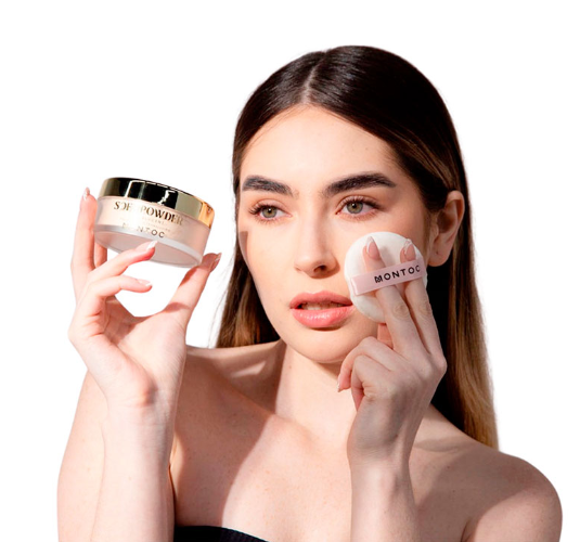 - Polvos sueltos de larga duración: Con los polvos sueltos de Montoc, tu maquillaje se mantiene perfecto durante horas, sin necesidad de retoques.