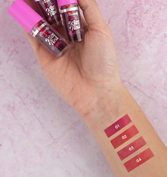 ¡Un beso de color en cada gota! Kiss Tint de PURPURE es una tinta lĂquida de larga duraciĂłn que realza tus labios y da un toque de color natural tipo blush en tus mejillas. Su fĂłrmula ligera se difumina fácilmente y se adapta a tu rutina con un acabado fresco y jugoso.